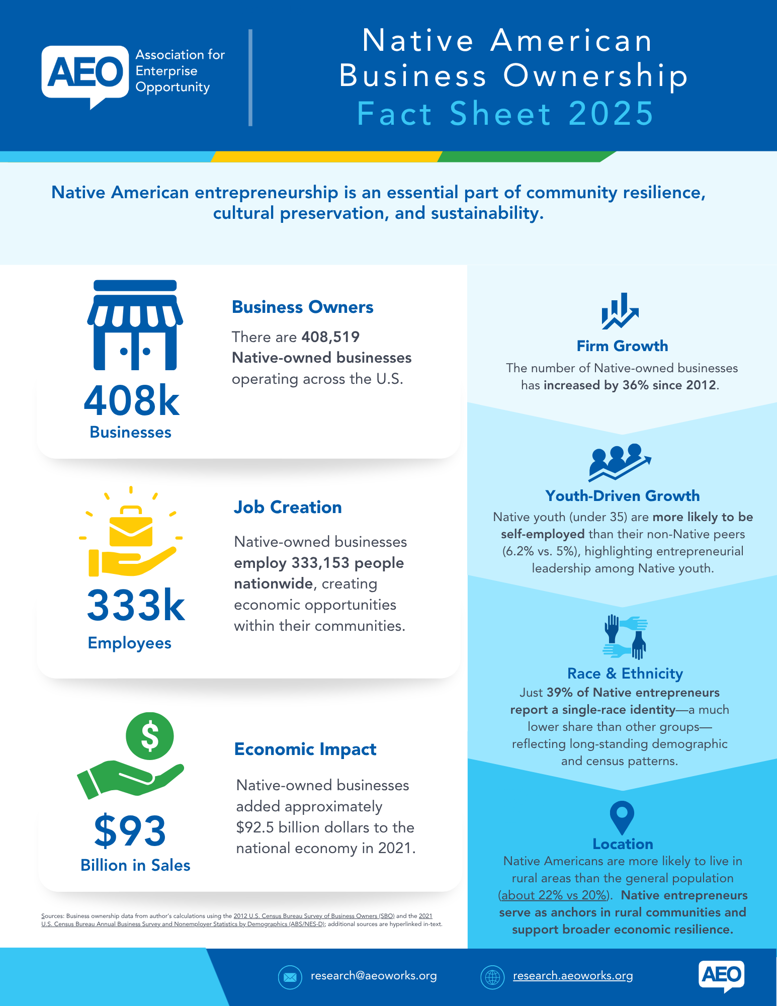 In celebration of Native American Month 2025, the Association for Enterprise Opportunity (AEO) has published a fact sheet highlighting the significant contributions of Native entrepreneurs and opportunities for support.